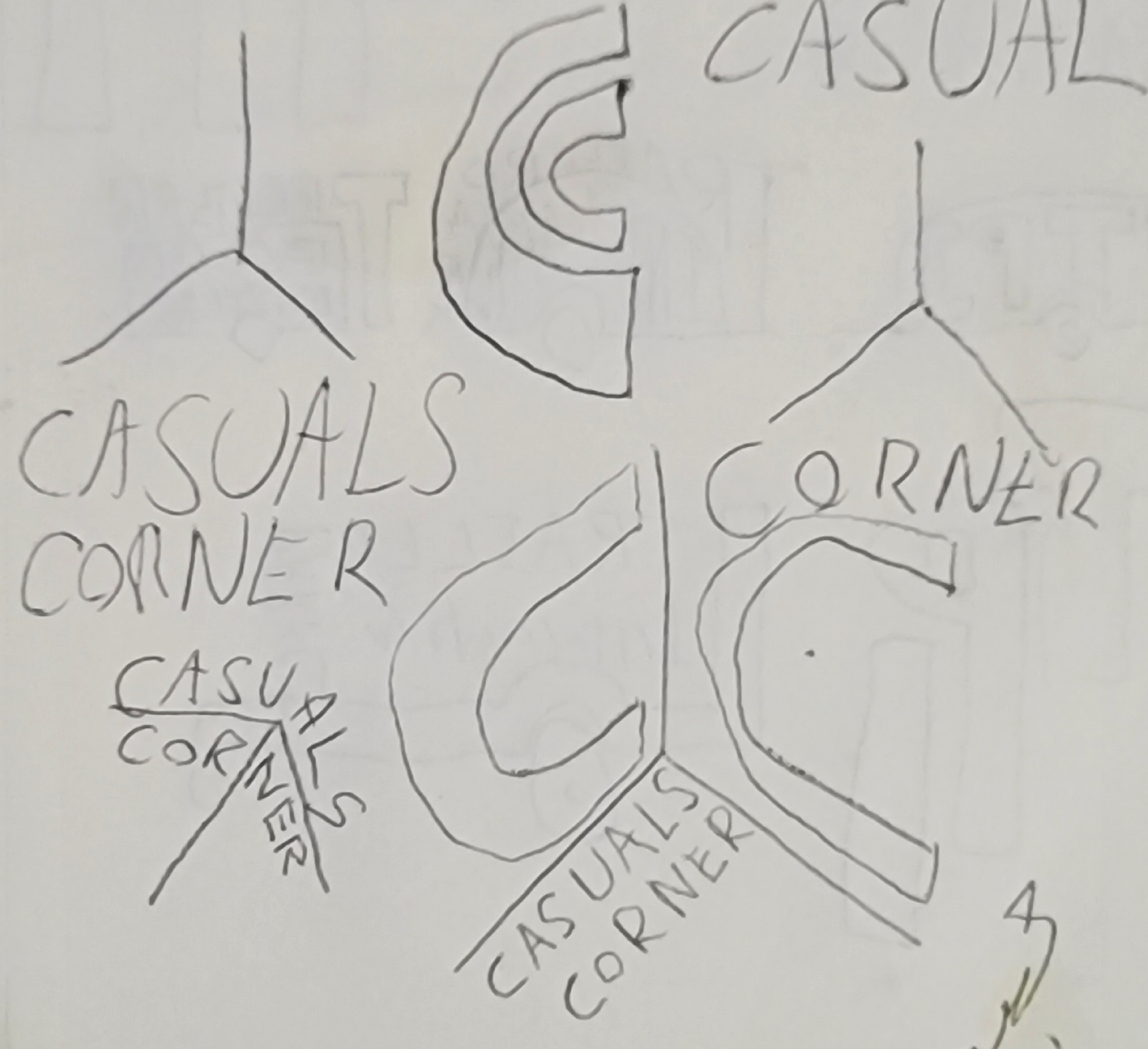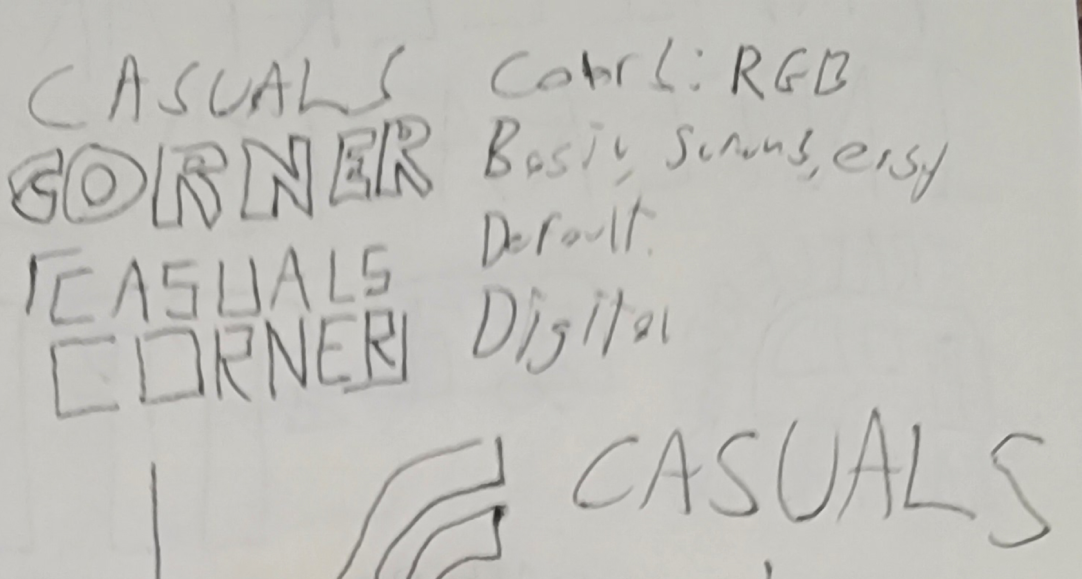 For the design I wanted to reflect this. I started by sketching block letters and a simple three line corner for simplicity and identity. I played around with a C in C, and perspective concept as well, but once that went to digital it did not look the way I liked. Something I went with very early was the idea of RGB color identity that I was able to explore once I brought the sketches onto the computer.