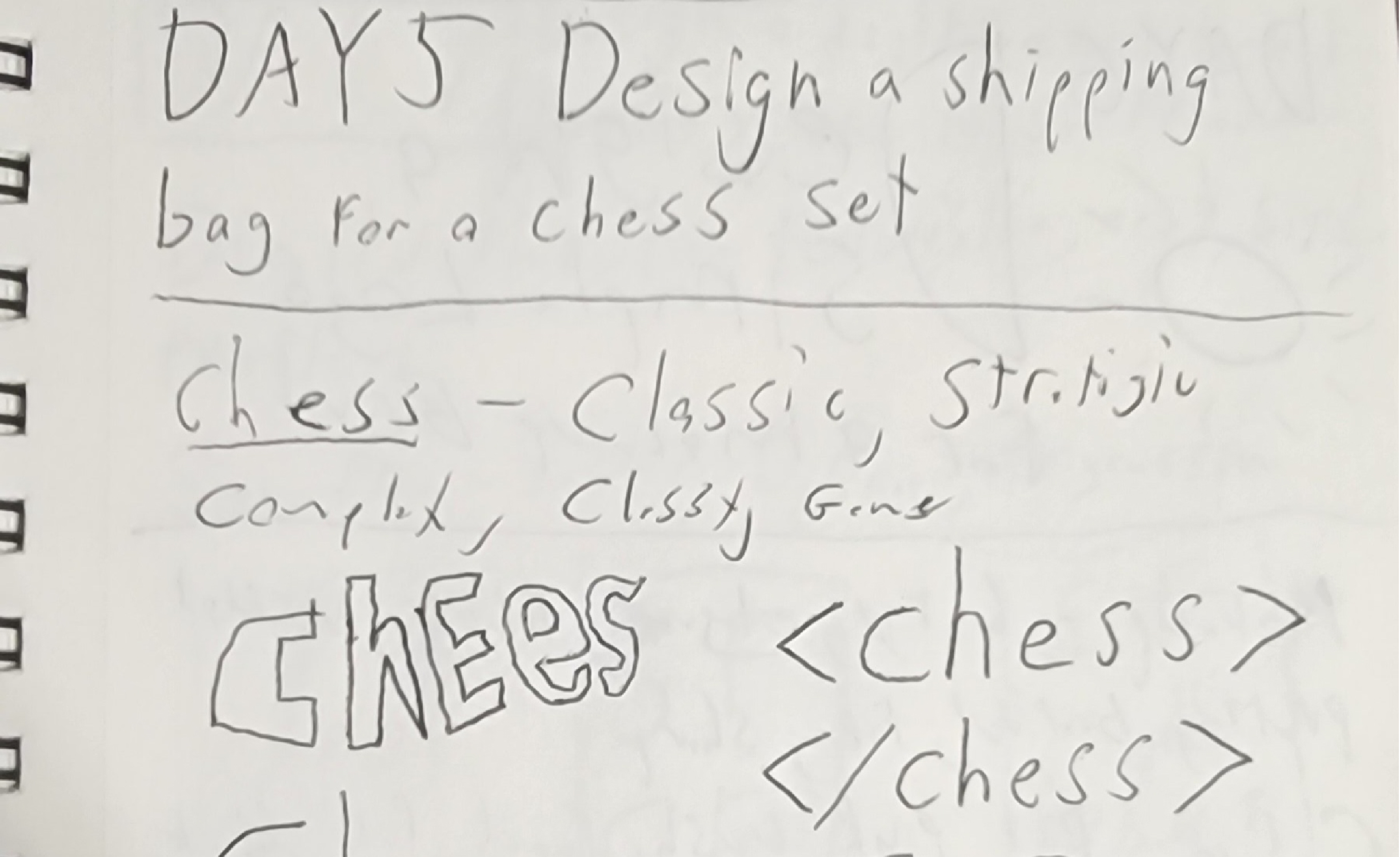 The design challenges I did were provided to me by prompts using Sharpen, I also self imposed a 90 minute start to finish deadline to help improve my quick thinking and sketching. It's a great tool to use when wanting to keep your skills fresh, or sharpen them if you will. For this design challenge, I was given the task of designing a simplistic shipping bag for a chess set.