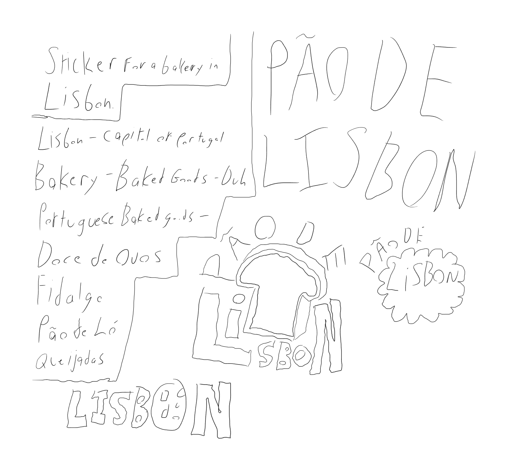 For this project I was looking to make use of the drawing tablet screen I had recently obtained. I went to trusty ole sharpen to grab a prompt, and I pulled “Design a sticker for a bakery in Lisbon”. With the new drawing tablet I decided to switch up my sketching game and use something digital, thankfully windows has an app called whiteboard which was very straightforward to use and exactly what I needed to get to sketching.