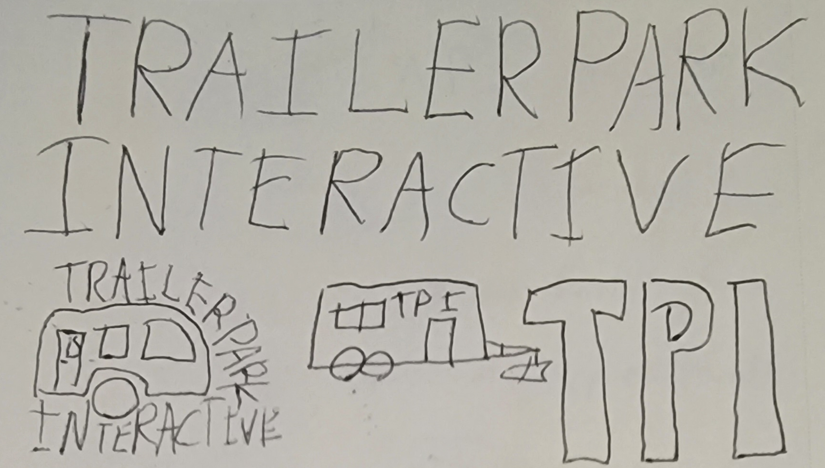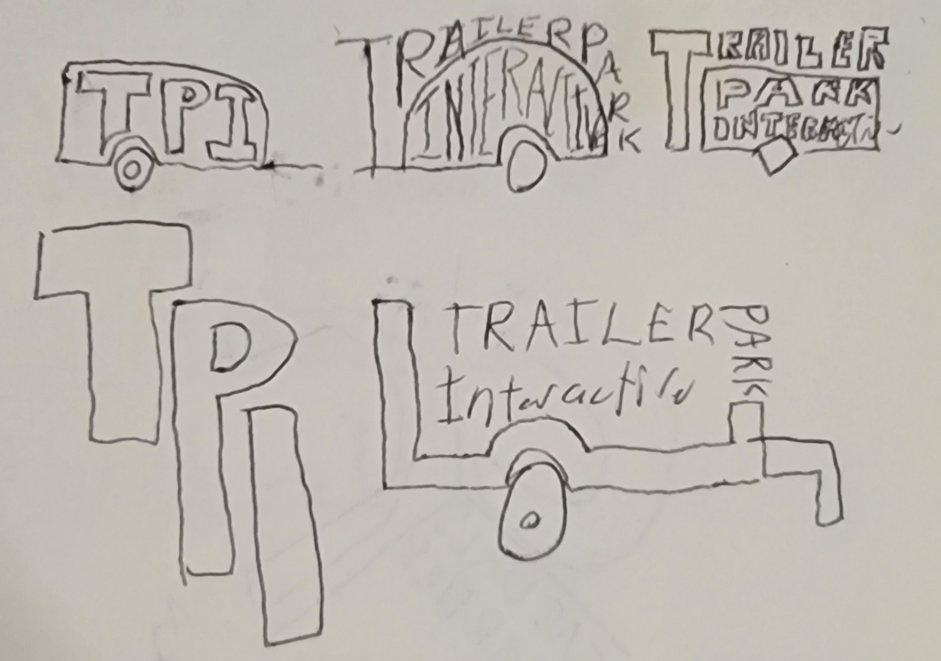 With the name selected it was time to get to work on sketches. My biggest struggle was deciding between TPI or spelling out Trailer Park Interactive. Below I have examples of both, during this ideation phase I really fell in love with the idea of having the type wrap around the trailer. It created some interesting results.